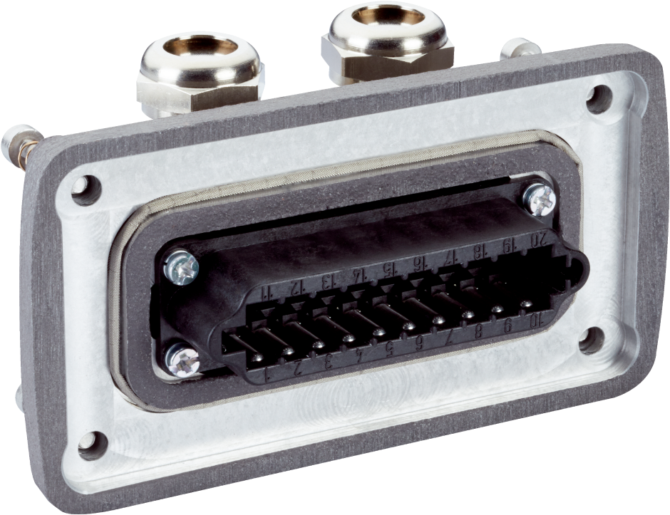 Connectors and cables Other connectors and cables, Male connector (ready to assemble) Connection type head A: Male connector, Harting male connector, 20-pin, angled Description: Shielded