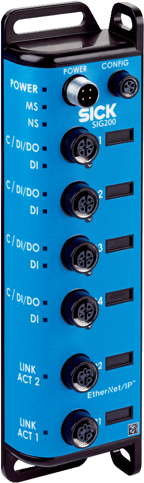 Network devices SIG200, SIG200-0A0512200 Product category: IO-Link Master Communication interface: IO-LinkUSBEthernetEtherNet/IP™REST API Supported products: IO-Link DevicesBinary actuatorsBinary switching sensors Scope of delivery: SIG200-0A05122004x blind plugs (M12) on port S2, S3, S4, P21x blind plug (M8) on port CONFIGMarking labelsQuickstart Further functions: Web server integratedUSB connection for easy configuration of the SIG200 Sensor Integration Gateway with SOPAS ET, the engineering tool from SICKLogic editor is available for easy configuration of logic functions