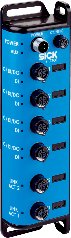 Network devices SIG200, SIG200-0A0G12200 Product category: IO-Link Master Communication interface: IO-LinkUSBEthernetREST API Supported products: IO-Link DevicesBinary actuatorsBinary switching sensors Scope of delivery: SIG200-0A0G122004x blind plugs (M12) on port S2, S3, S4, P21x blind plug (M8) on port CONFIGMarking labelsQuickstart Further functions: Web server integratedUSB connection for easy configuration of the SIG200 Sensor Integration Gateway with SOPAS ET, the engineering tool from SICKLogic editor is available for easy configuration of logic functions
