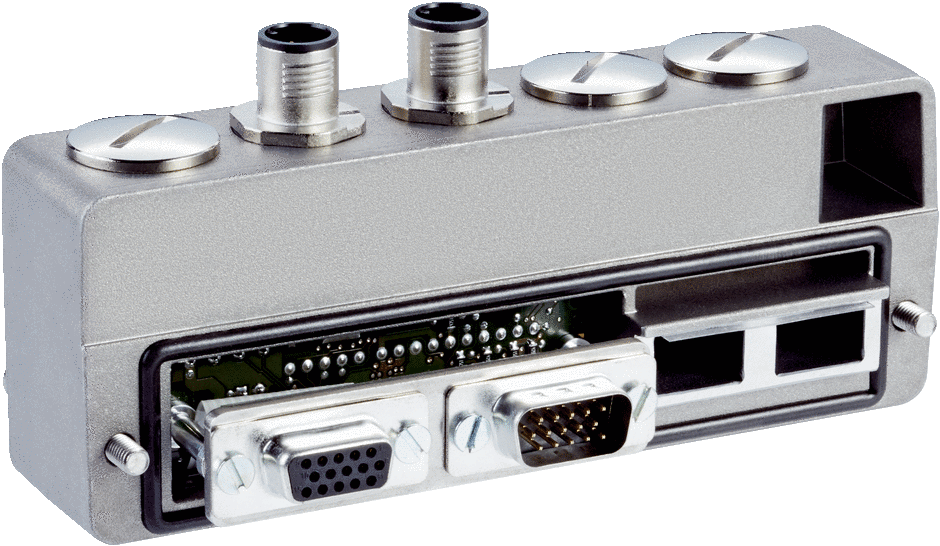 Connectors and cables Sensor/actuator cable, Slave Connection hood Connection type head A: Male connector, female connector, D-Sub-HD, 15-pin, straight Connection type head B: Male connector, M12, 8-pin Signal type: CAN, Ethernet, RS-232, FSI Description: CAN, Ethernet, RS-232, FSI, shielded, Connection type head B: plug M12, 5-pin; 2 x plug RJ-45