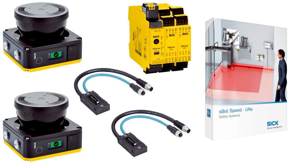 Safety systems Safe Robotics Area Protection, SYS/BOT-URE04020102N33 Variant: sBot Speed – URe Product type: System (hardware and software) Robot controller: Universal Robots: UR3e, UR5e, UR10e, UR16e Stopping process of the robot: With speed reduction Robot restart: Automatic or manual Safety controller type: Programmable Interface: Discrete I/Os