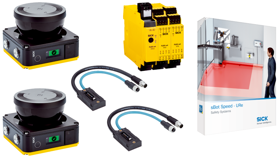 Safety systems Safe Robotics Area Protection, SYS/BOT-URE00420102NS3 Variant: sBot Speed – URe Product type: System (hardware and software) Robot controller: Universal Robots: UR3e, UR5e, UR10e, UR16e Stopping process of the robot: With speed reduction Robot restart: Automatic or manual Safety controller type: Programmable Interface: Discrete I/Os