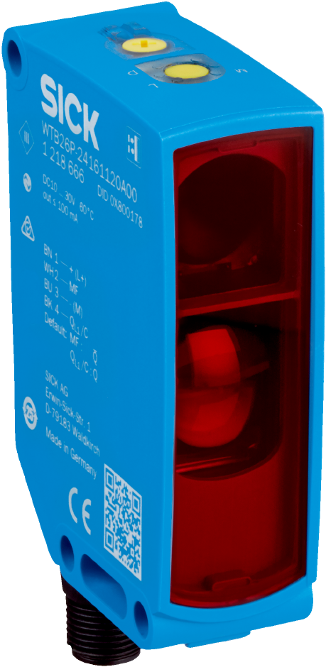 Photoelectric sensors W26, WTB26I-24861421A00 Sensing range min. / max.: 30 mm / 3,000 mm Functional principle: Photoelectric proximity sensor Functional principle detail: Background suppression Switching output: PNP Switching mode: Light/dark switching Connection type: Male connector M12, 4-pin Light source: LED Type of light: Infrared light Housing material: VISTAL® Adjustment: Teach-in button, cable, Potentiometer, Teach-Turn adjustment Communication interface: IO-Link V1.1 Smart Sensor: Enhanced Sensing, efficient communication, Smart Task Smart Task name: Base logics Housing: Rectangular