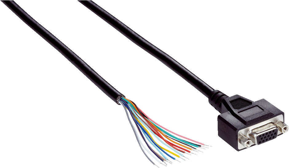 Connectors and cables Sensor/actuator cable, YFHDAC-020VD5XLEAX Connection type head A: Female connector, D-Sub-HD, 15-pin, straight Connection type head B: Flying leads Signal type: Power, serial, CANopen, digital I/Os Cable: 2 m, 15-wire, AWG26 Description: Power, serial, CANopen, digital I/Os, shielded, extension cable